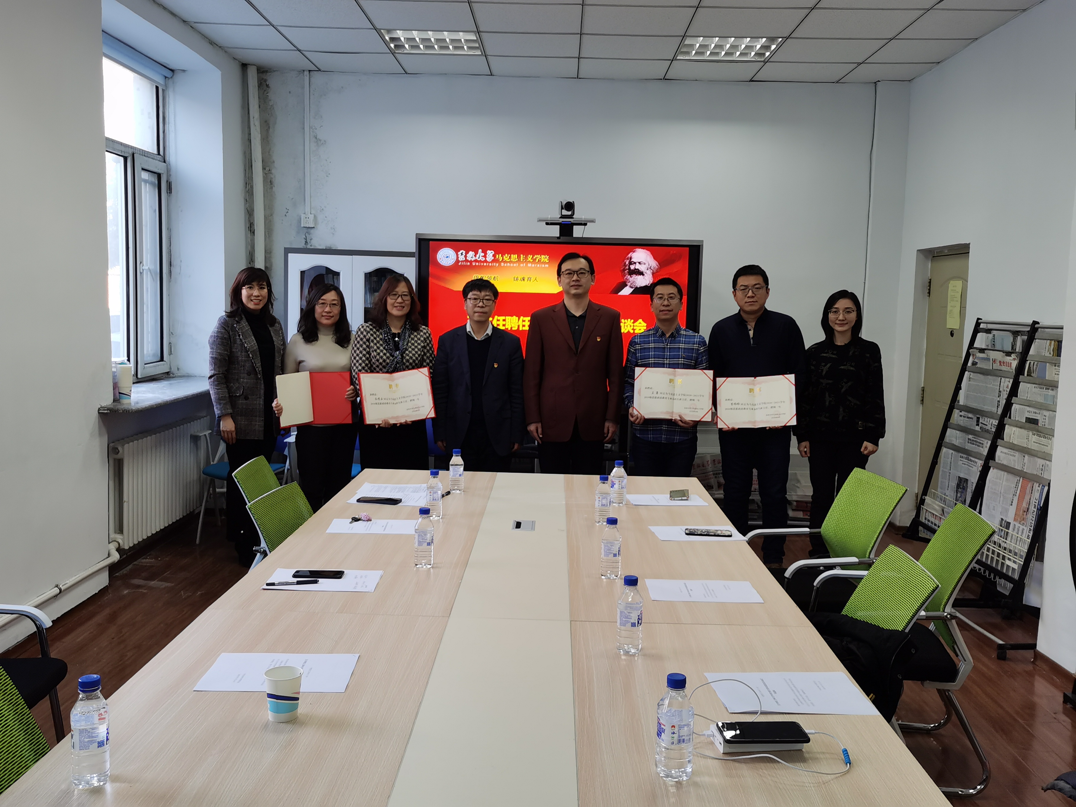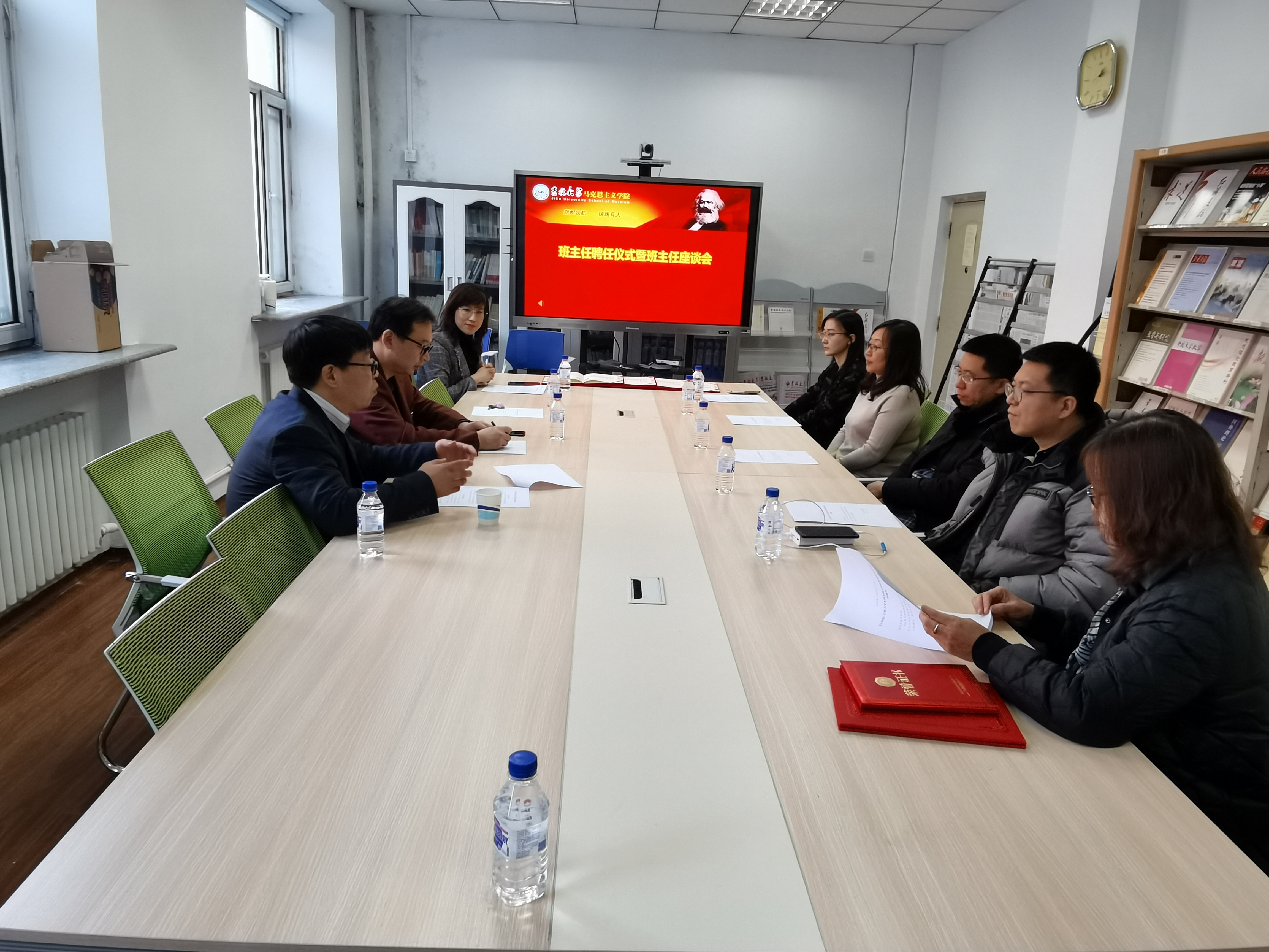 资料会议室举行了班主任聘任仪式暨座谈会,会议由党委副书记、纪委书记崔妍主持。党委书记霍志刚、院长吴宏政、2018级班主任孙秀云、2019级班主任王勇、2020级班主任王冬云、李晔晔、辅导员程思阳参加了本次会议。