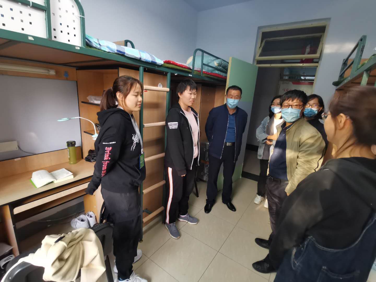 领导班子代表走入新生所在的寝室,关心慰问刚入学的新生。
