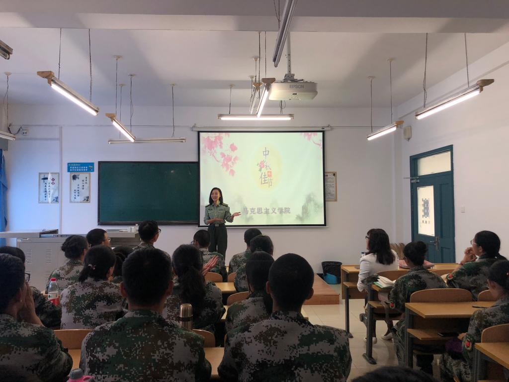 党委副书记、纪委书记崔妍老师、本科辅导员程思阳老师与新生共度中秋佳节。