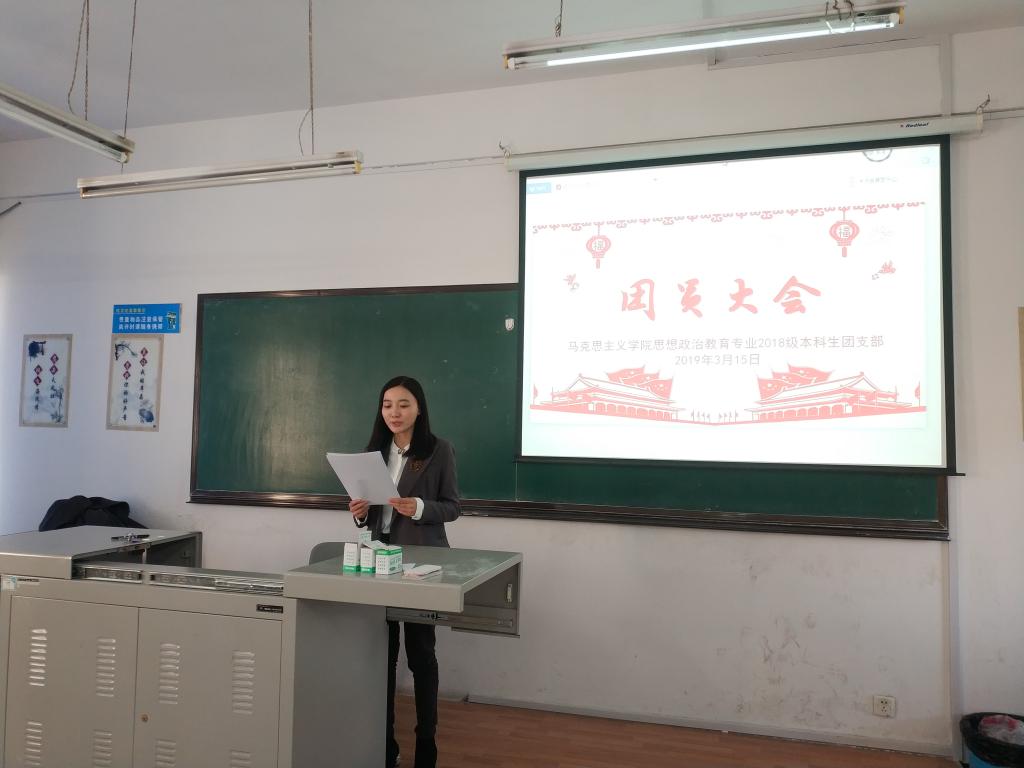 思想政治教育专业2018级本科生团支部在经信C211室召开2019年第一次团员大会。辅导员程思阳出席本次大会。大会由团支部书记杜思睿主持。