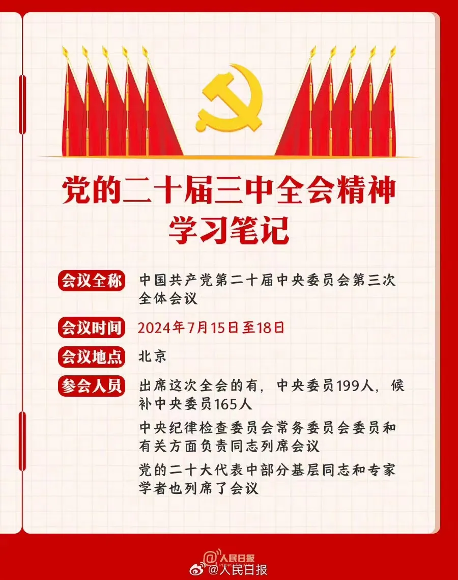 历史巨笔,常在关键处落墨;伟大征途,总在开拓中奋进!2024年7月15日至18日,中国共产党第二十届中央委员会第三次全体会议在北京举行。全会听取和讨论了习近平受中央政治局委托所作的工作报告,审议通过了《中共中央关于进一步全面深化改革、推进中国式现代化的决定》。习近平就《决定(讨论稿)》向全会作了说明。接下来,让我们深入学习贯彻党的二十届三中全会精神,共同感受改革潮涌风满帆的复兴伟力!