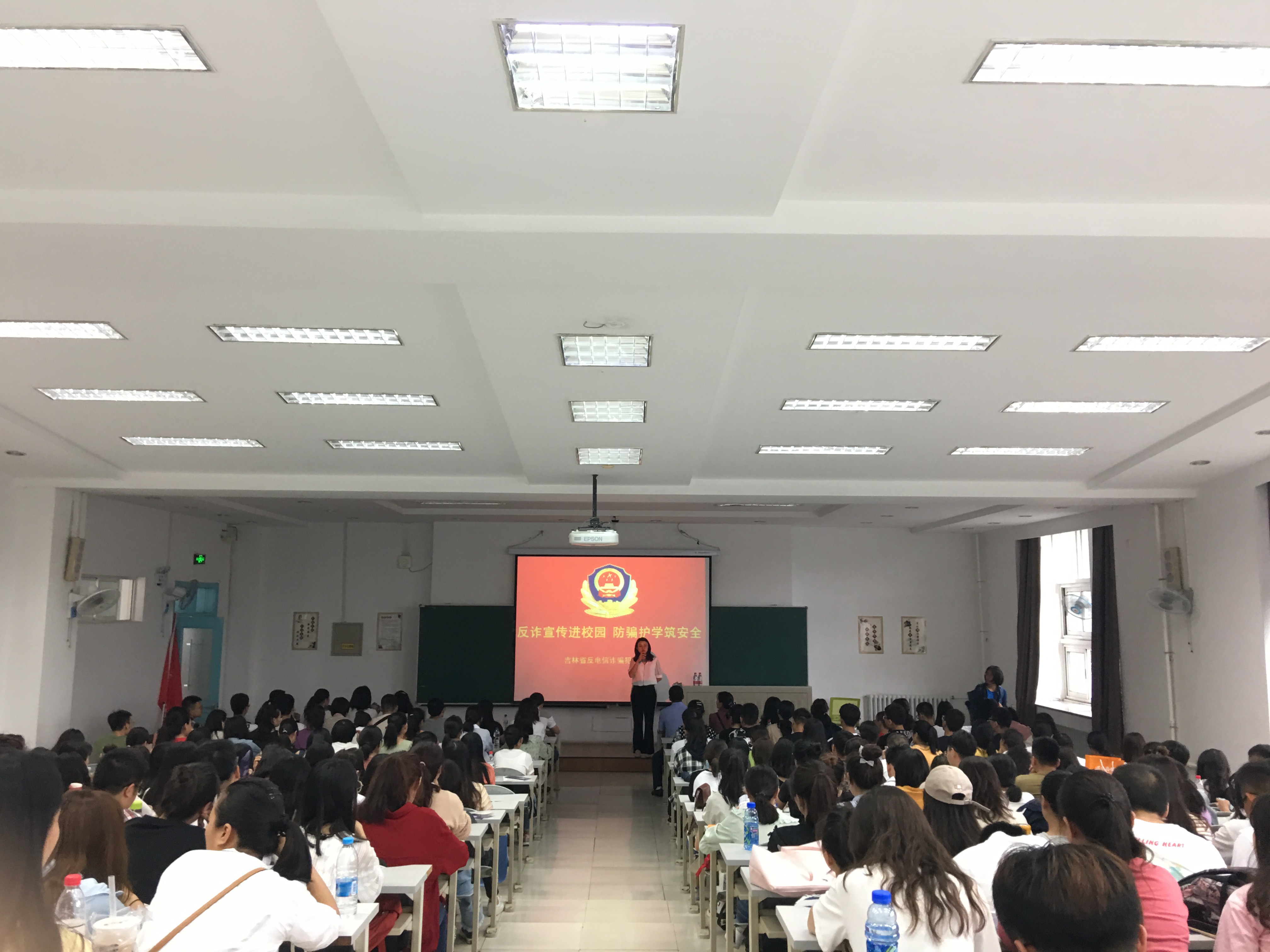 邀请吉林省公安厅反电信诈骗犯罪中心于宽警官在中心校区第三教学楼第十一阶梯教室为新生进行了防网络诈骗知识讲座。讲座由博彩平台