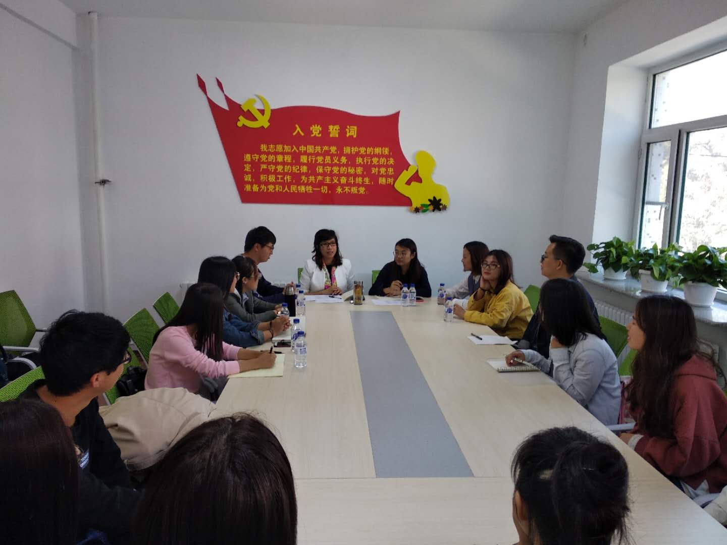 座谈在轻松愉悦的氛围中进行。新生同老师们围坐在一起,大家畅所欲言。崔妍老师向大家介绍了小班会的主要内容及主要目的,小班会是2018级各专业硕士研究生的第一次正式见面会,主要目的是促进新生之间的互相认识和了解,增进师生之间的交流与沟通。随后,同学们就“我”的简单介绍、“我”的兴趣爱好、“我”与吉大的缘分等诸多方面向老师和同学们展示并分享了自己的故事。座谈中,大家或是表达了来吉大半个月以来的所见所感,或是浅谈对本专业的认识及未来规划,有些同学还提出了一些初来北方的感受。两位老师不仅耐心聆听了各位同学们的分享,也针对同学们初来吉大的一些饮食及生活的轻微不适进行了悉心关照,同时也对同学们的家庭及情感等方面的情况进行了大致了解。