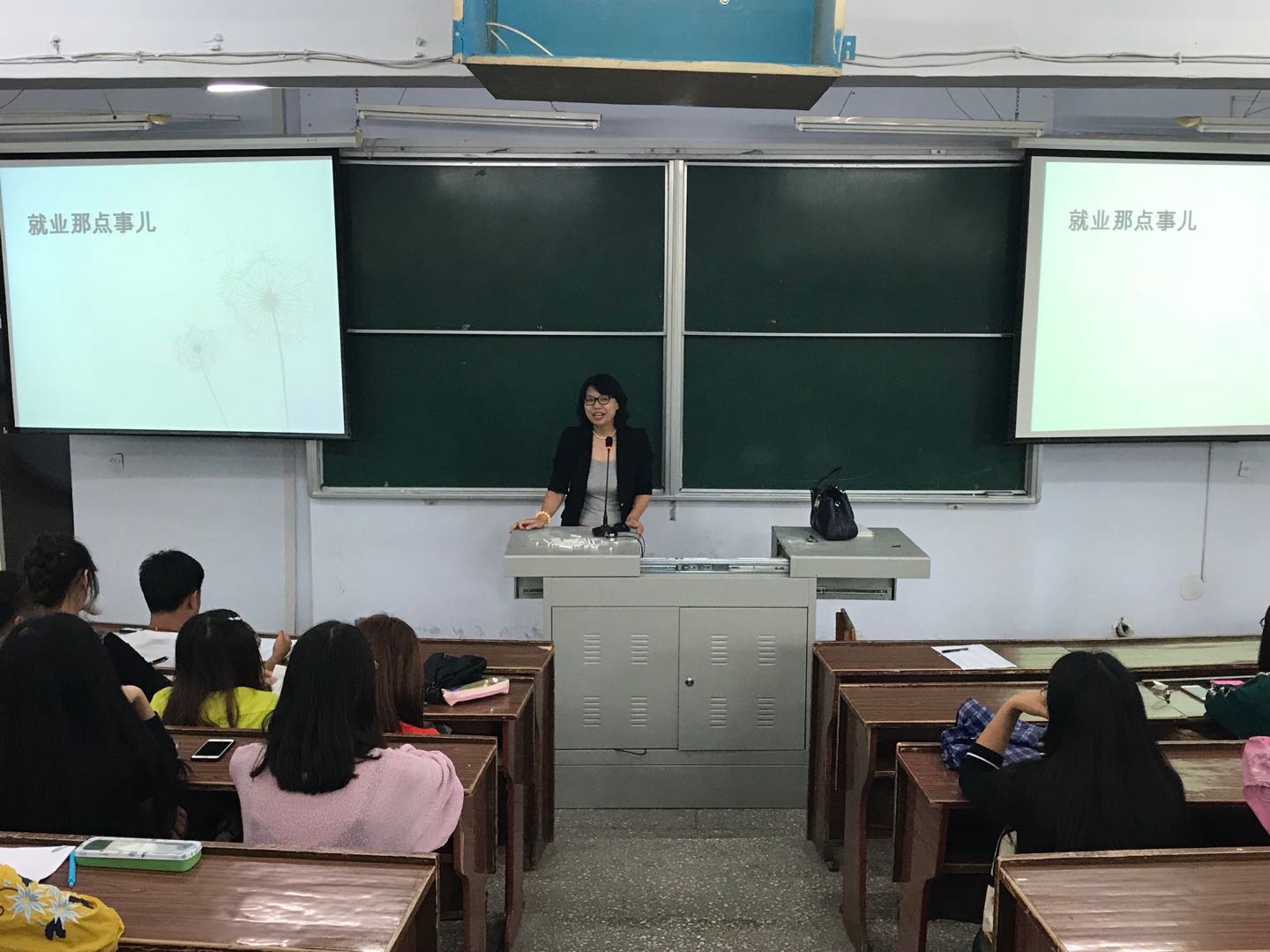 冯老师首先为新生们生动全面地讲解了当前就业种类和就业形势分析,并向大家介绍了近年来博彩平台