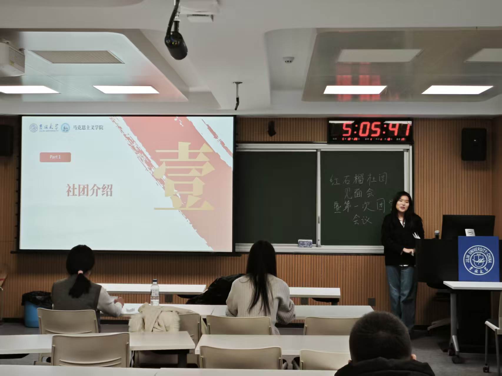大学生红石榴社团见面会暨理论学习会议顺利召开。本次活动由主席王博涵主持,社团全体成员参加。