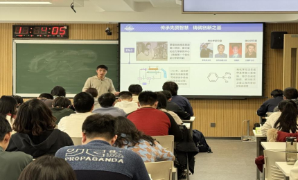 化学学科七十余年发展史,回溯唐敖庆、徐如人、沈家骢等老一辈科学家“以国家需要为志业”的奋斗历程,强调先辈们在白山黑水间书写的“吉大化学现象”,正是黄大年精神中“心有大我、至诚报国”的生动诠释。他还特别指出,在人工智能重塑科研范式的今天,学生更要响应2025年全国两会关于“加快建设教育强国、科技强国、人才强国”的战略部署,坚守“立德为本”的文化根基,传承唐敖庆院士“敢闯无人区”的勇气,既要夯实现代科学知识根基,又要让爱国情、报国志成为驾驭科技创新航向的罗盘,让“人脑创造力+AI算力”成为破解“卡脖子”难题的金钥匙。