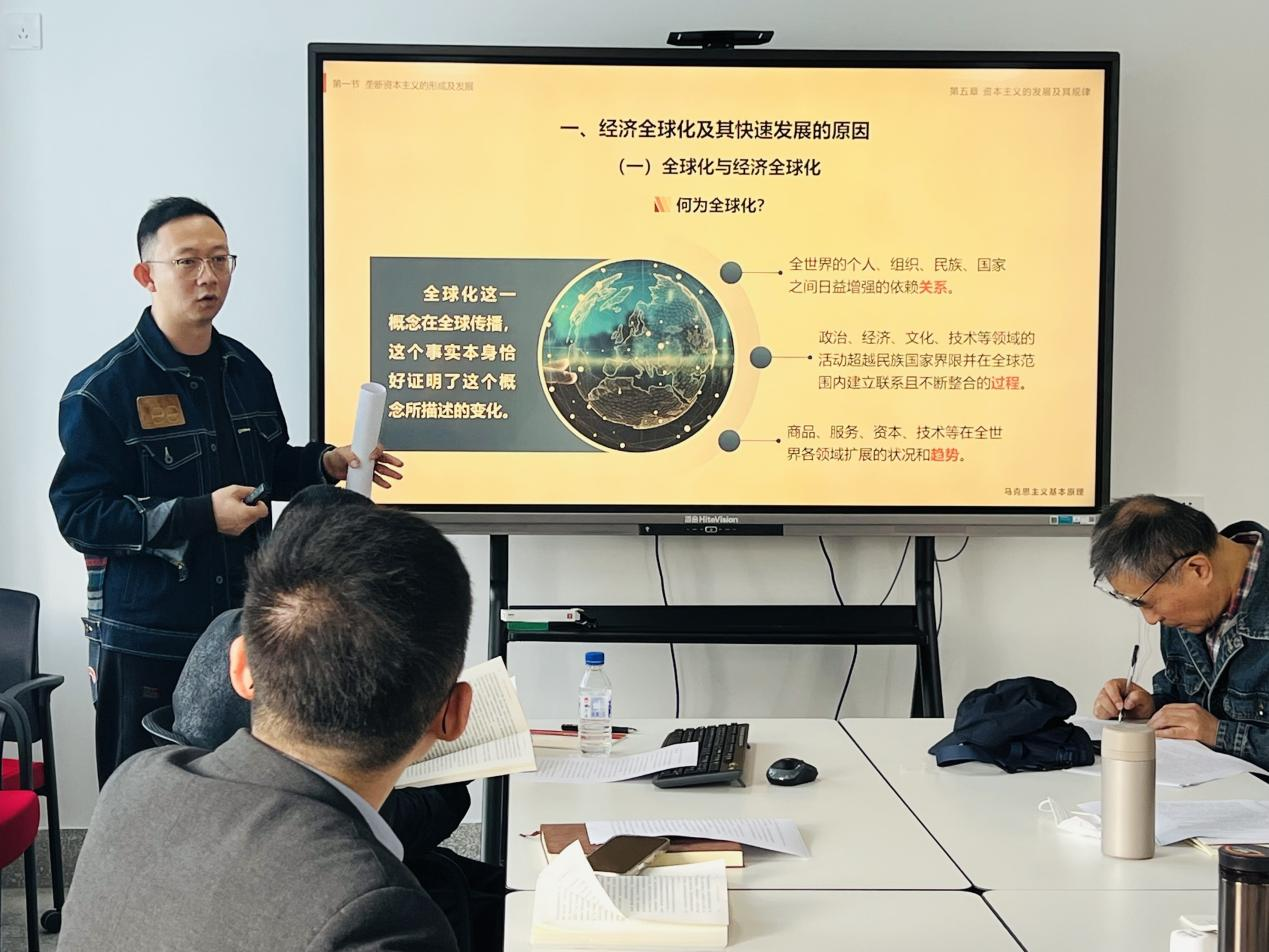 在教学展示环节,青年教师于天宇、陈旭、李蔚然分别围绕生产集中与垄断的形成、经济全球化及其影响、资本主义的基本矛盾与经济危机的主题,进行了教学展示。老师们对青年教师的教学展示给予高度评价,认为本次备课会展现了青年教师扎实的理论功底和积极的创新精神。同时,针对青年教师在教学实践中遇到的困惑进行了一一解答,并提出了宝贵的意见和建议如在教学中要进一步关注学生的反馈和学习效果评估,根据学生的兴趣和需求灵活调整教学内容和方法;要加强马克思主义基本原理现实问题紧密结合,让原理课教学更具现实感和说服力
