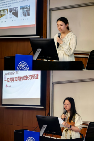 姚佳欣同学代表小组分享了作品《梁家河的岁月》的创作心得。她解析了视频中的场景及其背后的寓意,并选取关键片段进行展示和讲解。指导教师王幼英副教授在点评时,特别说明了创作背后的细节:“最打动我的是同学们的真诚与用心。为了真实还原历史氛围,几位来自不同省份的同学,专门去学习模仿陕西话,最终呈现效果非常好。”将厚重的原著精髓浓缩在8分钟视频,体现了小组对经典的精准把握。