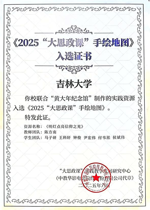 黄大年纪念馆,传承“人民教育家”宝贵的实践教育资源,打造出以黄大年先生为故事原型的优秀作品——《明灯点亮信仰之光》,并成功入选教育部《2025“大思政课”手绘地图》。日前,“大思政课”实践教学发展研究中心向博彩平台