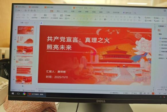 生物育种(动科)班张傲雪同学从当代视角出发,提出《共产党宣言》理论深化研究的空间。即“如何结合AI对社会进行分析,深化对当代资本主义剥削形式的研究;如何在全球化背景下,丰富和发展 “人类解放” 的内涵;如何将《共产党宣言》的基本原理与新时代中国特色社会主义实践更紧密地结合起来。”她认为“这些问题的探索,需要我们坚持实事求是的科学态度,既要学习《共产党宣言》的理论精髓,又要立足当代实际进行理论创新。”