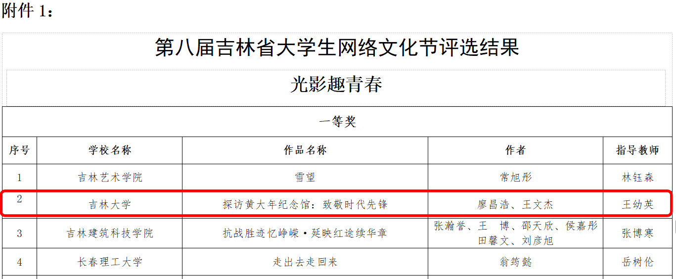 近日,吉林省教育厅公布第八届吉林省大学生网络文化节评选活动获奖名单,博彩平台