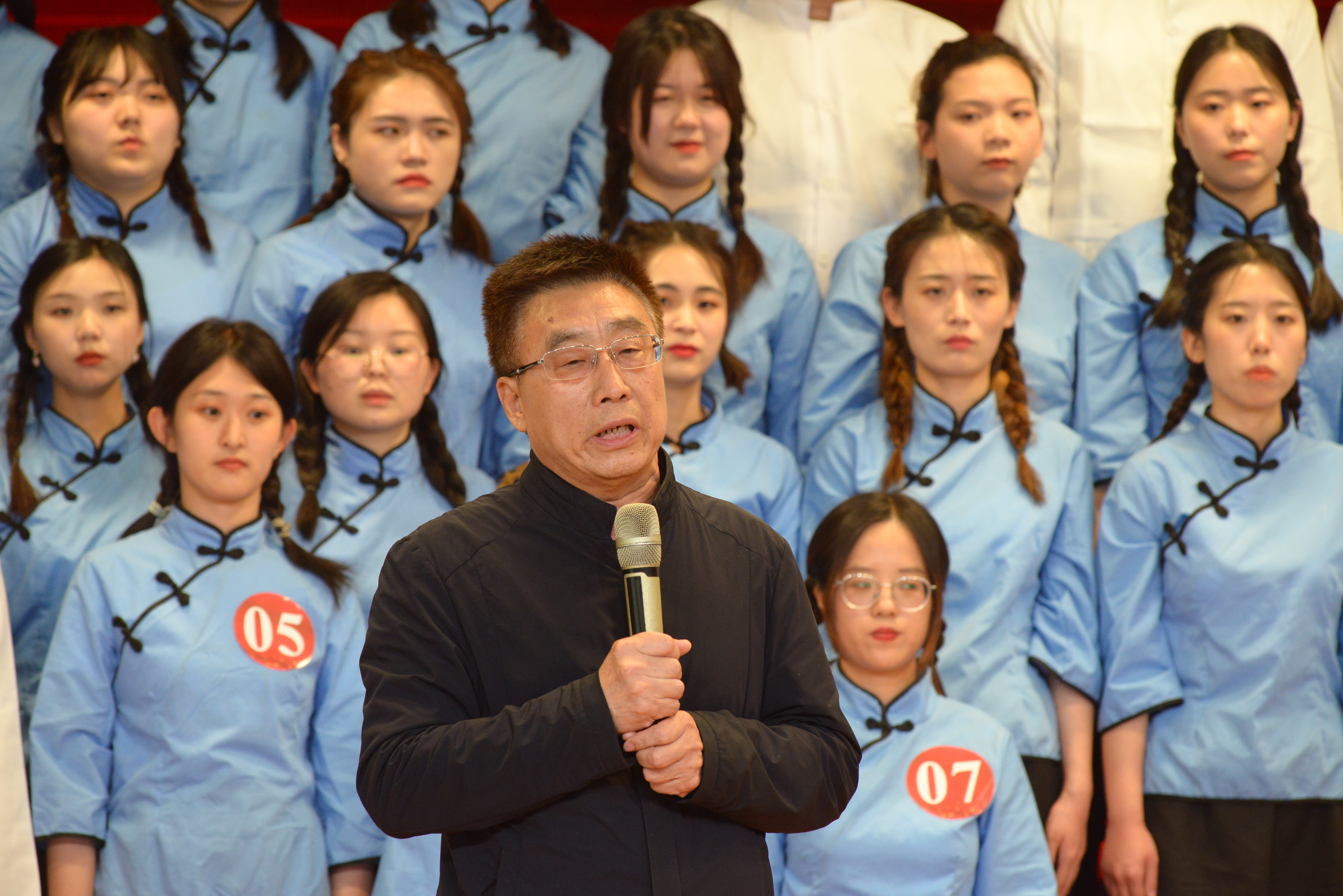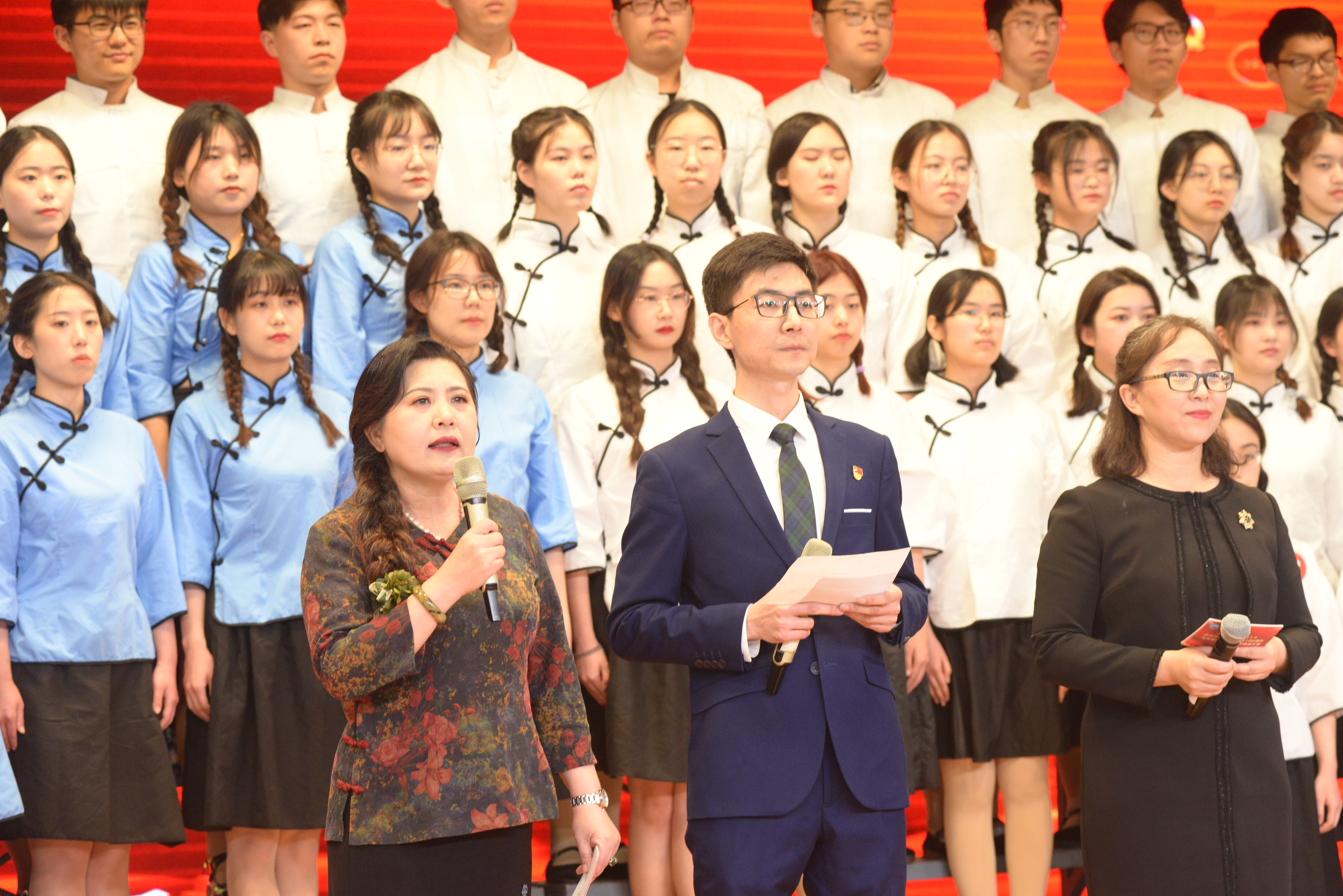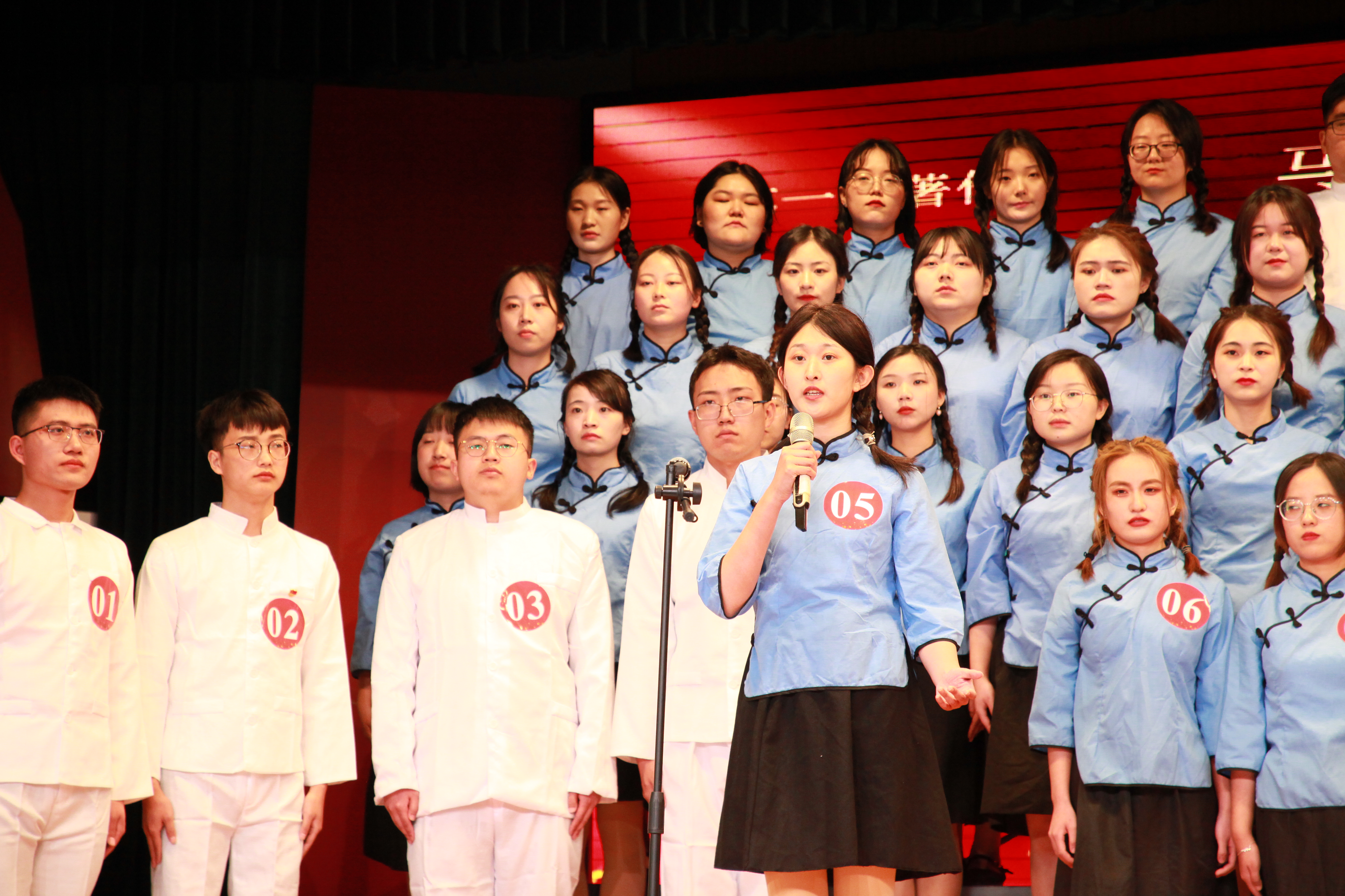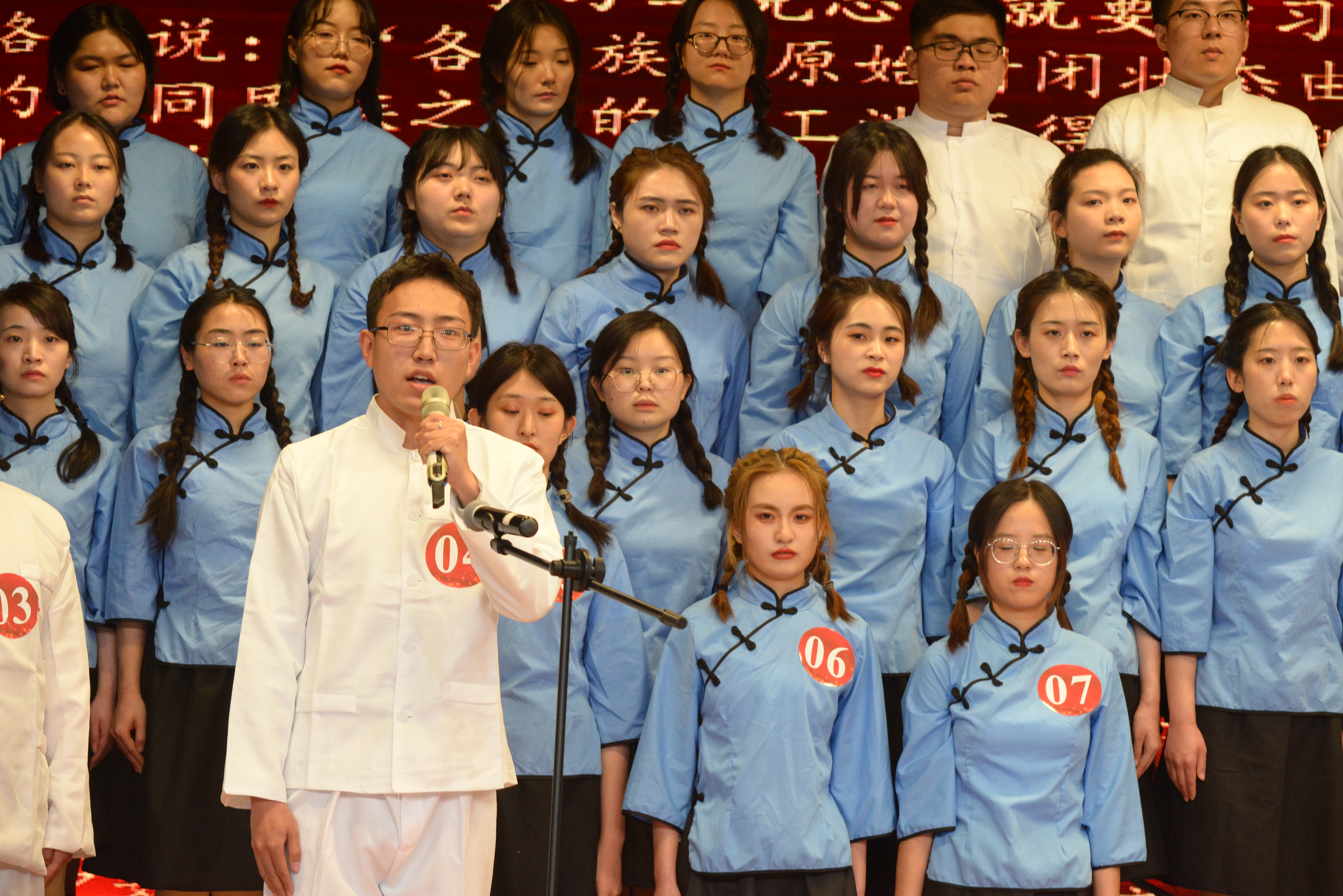 相关领导同全体参赛73名学生合影留念,比赛在《没有共产党就没有新中国》的奏唱中圆满结束。