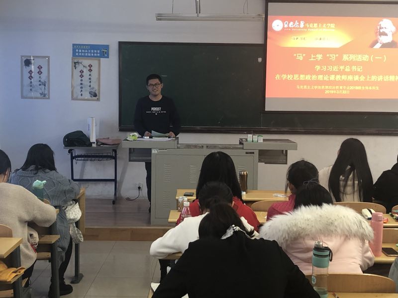 思想政治教育理论课教师座谈会上的讲话精神”学习讨论会,习近平总书记的讲话,同学们受到了极大的振奋和鼓舞,积极参与、踊跃发言、感触良多。辅导员程思阳组织并主持了学习讨论会。