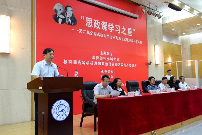 徐艳国副司长在总结讲话中阐述了举办思政课学习之星夏令营的重要意义。他指出,本次夏令营是全面推动习近平新时代中国特色社会主义思想进教材进课堂进学生头脑,深入学习贯彻习近平总书记在北京大学师生座谈会、纪念马克思诞辰200周年大会上的重要讲话精神,深入实施高校思政课教师队伍建设专项工作,继续打好提高高校思政课质量和水平的攻坚战,不断增强学生对思政课的获得感的重要举措。他认为参加此次夏令营的同学,将会在不断学习成长中感受到此次活动的长远的、长效的影响,不仅能够内化于心,还能够外化于行。徐司长向全体营员提出三点要求:第一,自觉打好人生的鲜亮底色。马克思主义是中国大学最鲜亮的底色,也是青年学生人生最鲜亮的底色。马克思主义不仅仅是一些具体的理论知识,更重要是通过学习理论课程来掌握马克思主义的立场、观点和方法。马克思主义这个鲜亮底色对大家今后成长至关重要。所以要自觉打好人生的鲜亮底色。第二,要把个人梦和中国梦融合起来。中国梦是国家的梦,是民族的梦,是人民的梦。同学们是实现中华民族伟大复兴中国梦的历史进程最直接的参与者和受益者,大家要自觉地把个人的梦融入中国梦之中,要敢于追梦,勤于圆梦。第三,要自觉做马克思主义的传播者。传播马克思主义,思政课学习之星营员们责任重大,都要自觉传播马克思主义,特别是习近平新时代中国特色社会主义思想。大家要学习理论,研究理论,传播理论,做德智体美全面发展的社会主义建设者和接班人。