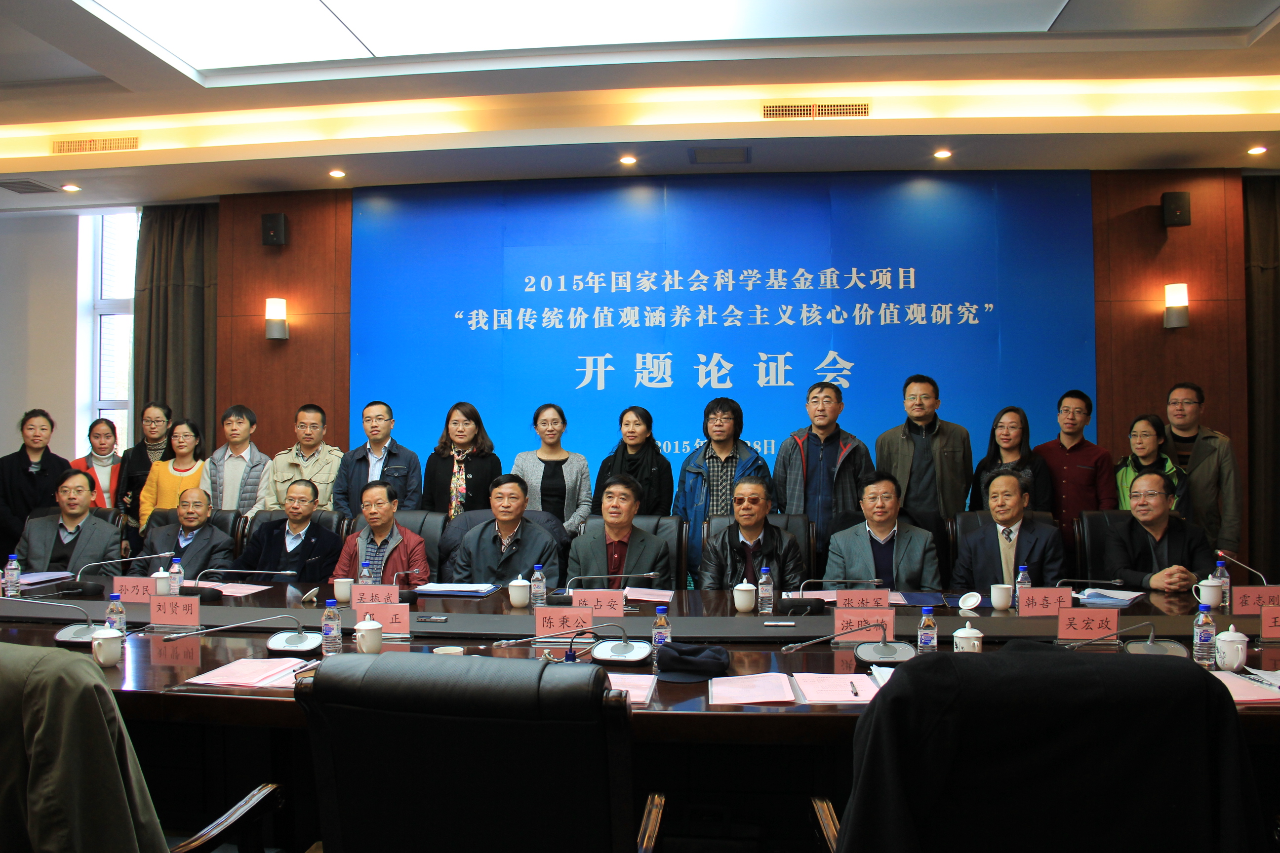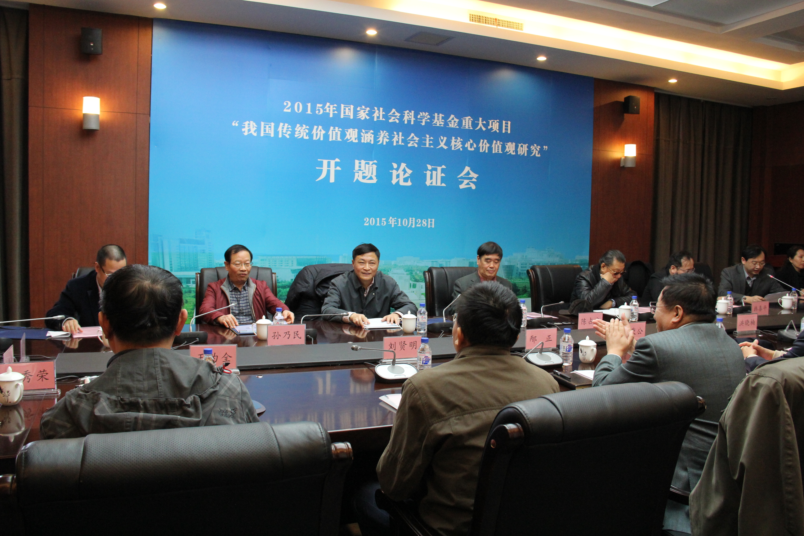 ,对各位专家莅临开题论证会表示热烈欢迎,对国家社会科学基金重大项目“我国传统价值观涵养社会主义核心价值观研究”开题表示热烈祝贺,并就传统价值观与社会主义核心价值观的关系谈了自己的看法。
