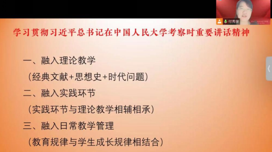 疫情隔离空间,却不隔离思想。本次学习习近平总书记考察中国人民大学重要讲话精神座谈会在云端线上完满落幕。相信通过本次座谈会,全体本科生能够牢记党的教诲,立志民族复兴,不负韶华,不负时代,不负人民,在青春的赛道上奋力奔跑。