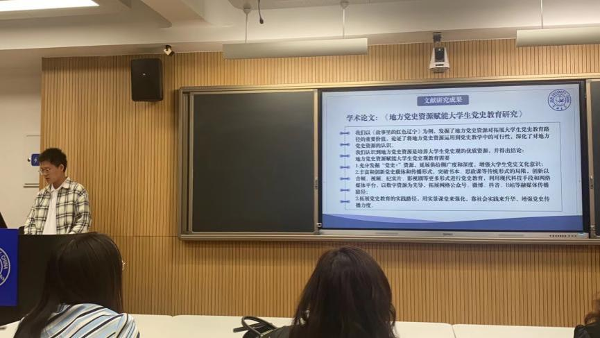 2020级本科生张筱煜首先阐释了项目选题的背景与意义,并详细介绍了小组系统化研究、学理化阐释的研究方法,以及多次交流展示的研究过程,最后展示了团队取得的丰硕成果。评审老师在肯定张筱煜小组研究成果的同时,也就融合路径、数据分析等方面提供了详尽的指导与建议。
