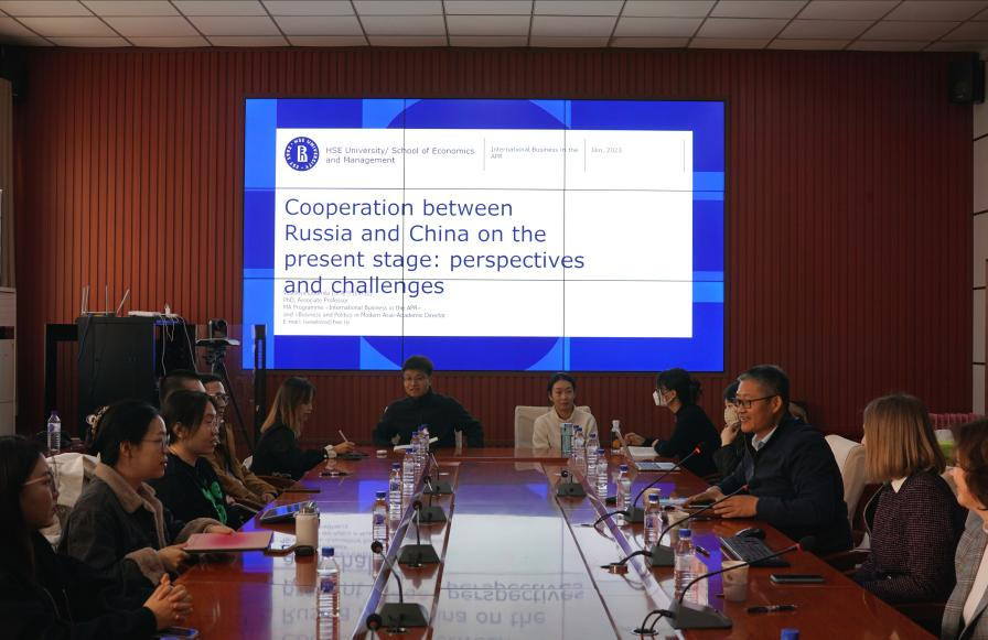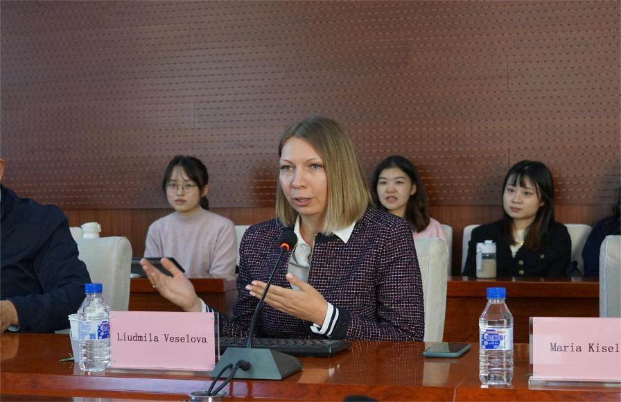 在交流互动环节,维塞洛娃教授围绕现场师生所提出的中俄关系问题进行了有益探讨,并对中俄关系的未来发展作出了积极展望。期间,俄罗斯国立高等经济大学国际处处长玛利亚·基谢廖娃(Maria Kiseleva)女士也介绍了俄罗斯留学及校际学术交流相关事宜,她热情欢迎马院学子前往俄罗斯国立高等经济大学进行交流学习。