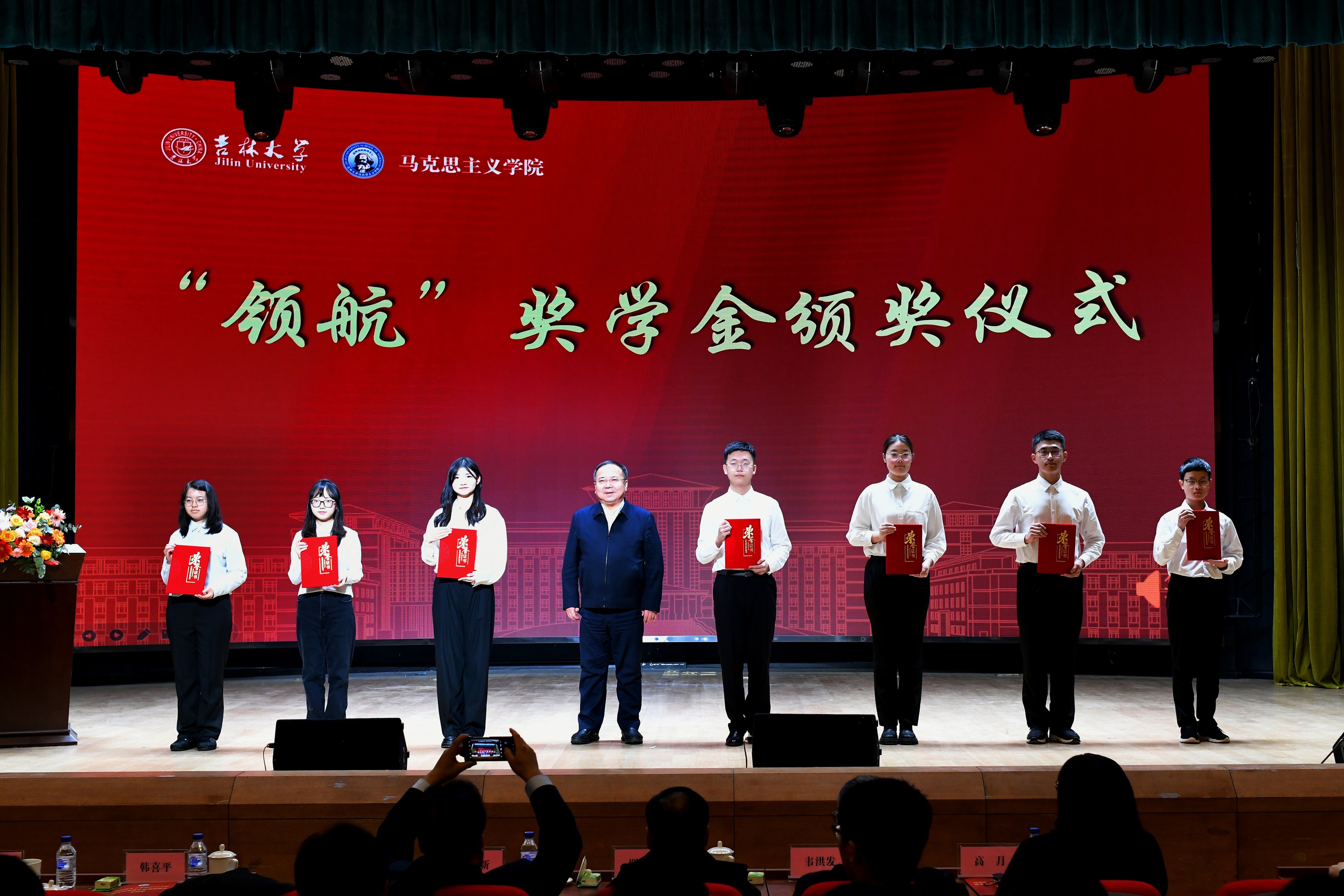 开学典礼在全场庄严奏唱中华人民共和国国歌中拉开了序幕。首先进行“领航”奖学金颁奖仪式,校党委副书记韩喜平为7名获得“领航”奖学金的本科生颁奖。“领航”奖学金是韩喜平书记用个人所获奖金创立的资助项目,用于教育、培养博彩平台