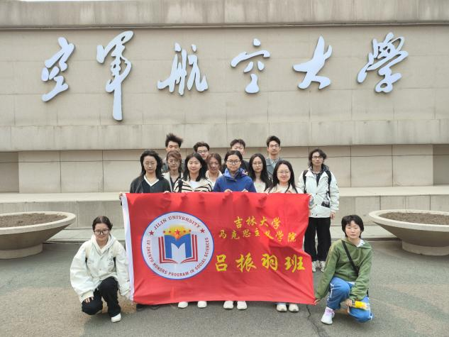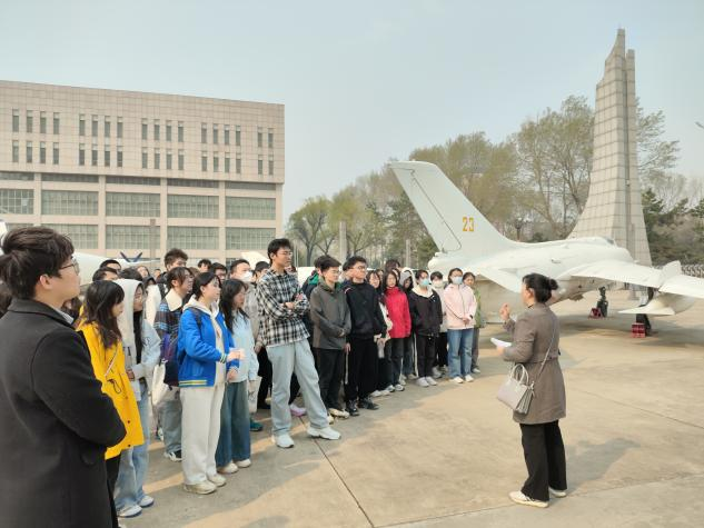 毛泽东思想概论课程师生循着战鹰翱翔的轨迹,走进承载着共和国空天记忆的殿堂。4月24日,在陈方南老师的带领下,2024级马院本科生来到空军航空大学开展实践教学,通过零距离观察战鹰铁翼、沉浸式感悟老航校精神,在螺旋桨的轰鸣与星辰大海的征程中汲取奋进力量。这场跨越时空的对话,既是对毛泽东思想“枪杆子里面出政权”实践伟力的生动诠释,更是新时代青年领悟“可上九天揽月”战略远见的深刻课堂。
