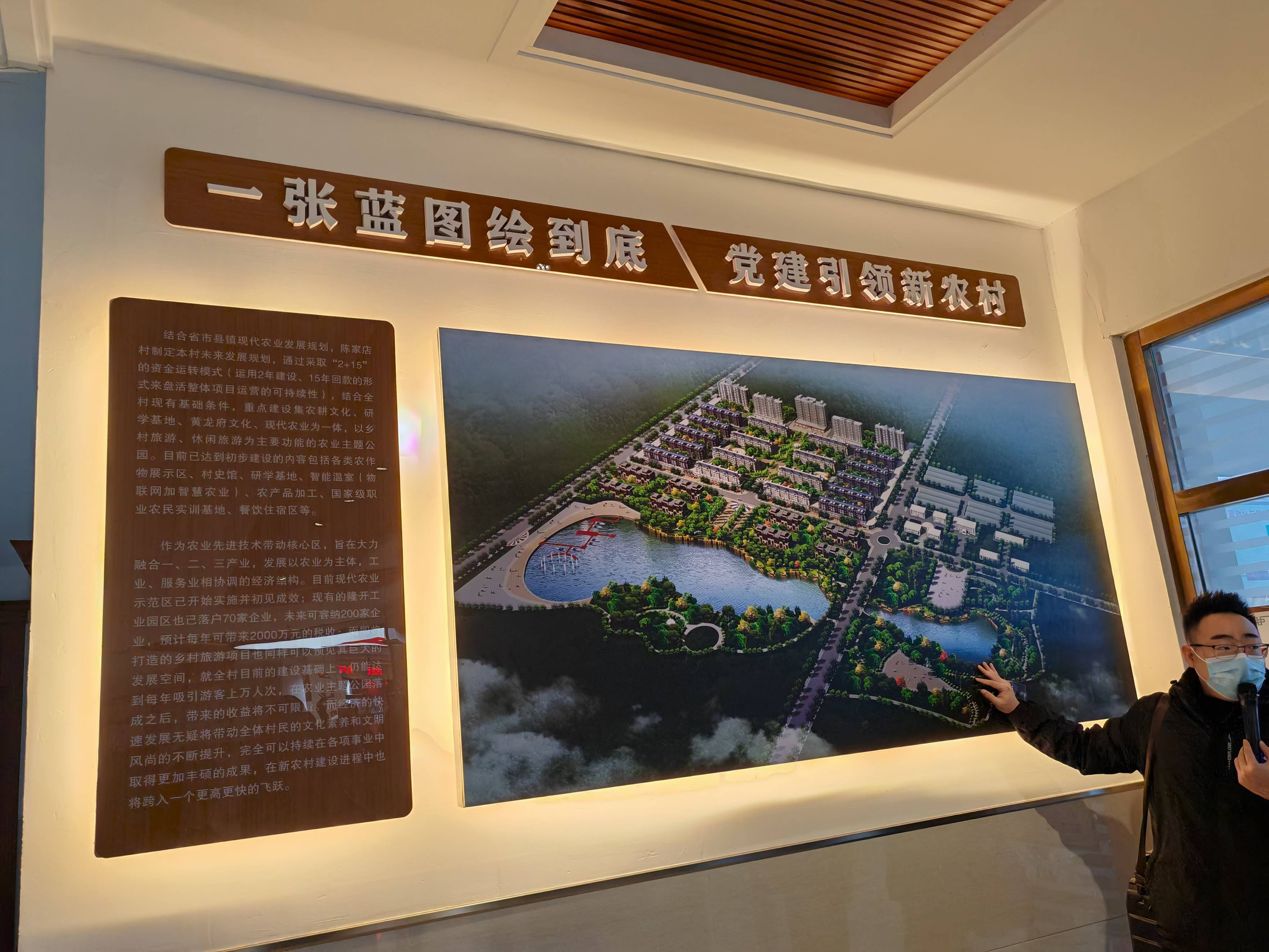 一行人在基地负责人陪同下,参观了陈家店1期智能温室、草莓大棚和嘉和社区。室外是晚秋的萧瑟景象,智能温室中南方的各种植物生机盎然,有金琥、棕榈、圆叶蒲葵、柊叶等植物和木瓜、香蕉、火龙果等热带水果,让人仿佛置身在海南。草莓大棚中幼苗正在蓬勃生长,虽然刚刚10公分高,1月份就到了采摘的时节。嘉和社区拥有1600平方米的一站式服务大厅,内设农家书屋、卫生室、银行、餐厅、会议室、调解室以及便民服务台等,服务功能齐全,成为陈家店村主要的办公议事中心和村民集体活动中心。