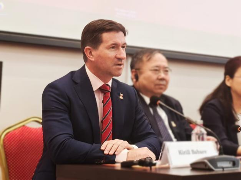 博彩平台 党委副书记韩喜平教授,俄罗斯科博彩平台 中国与现代亚洲研究所所长基里尔·巴巴耶夫教授,俄中友好协会第一副主席、中华人民共和国“友谊勋章”获得者加琳娜·库利科娃出席开幕式并致辞。