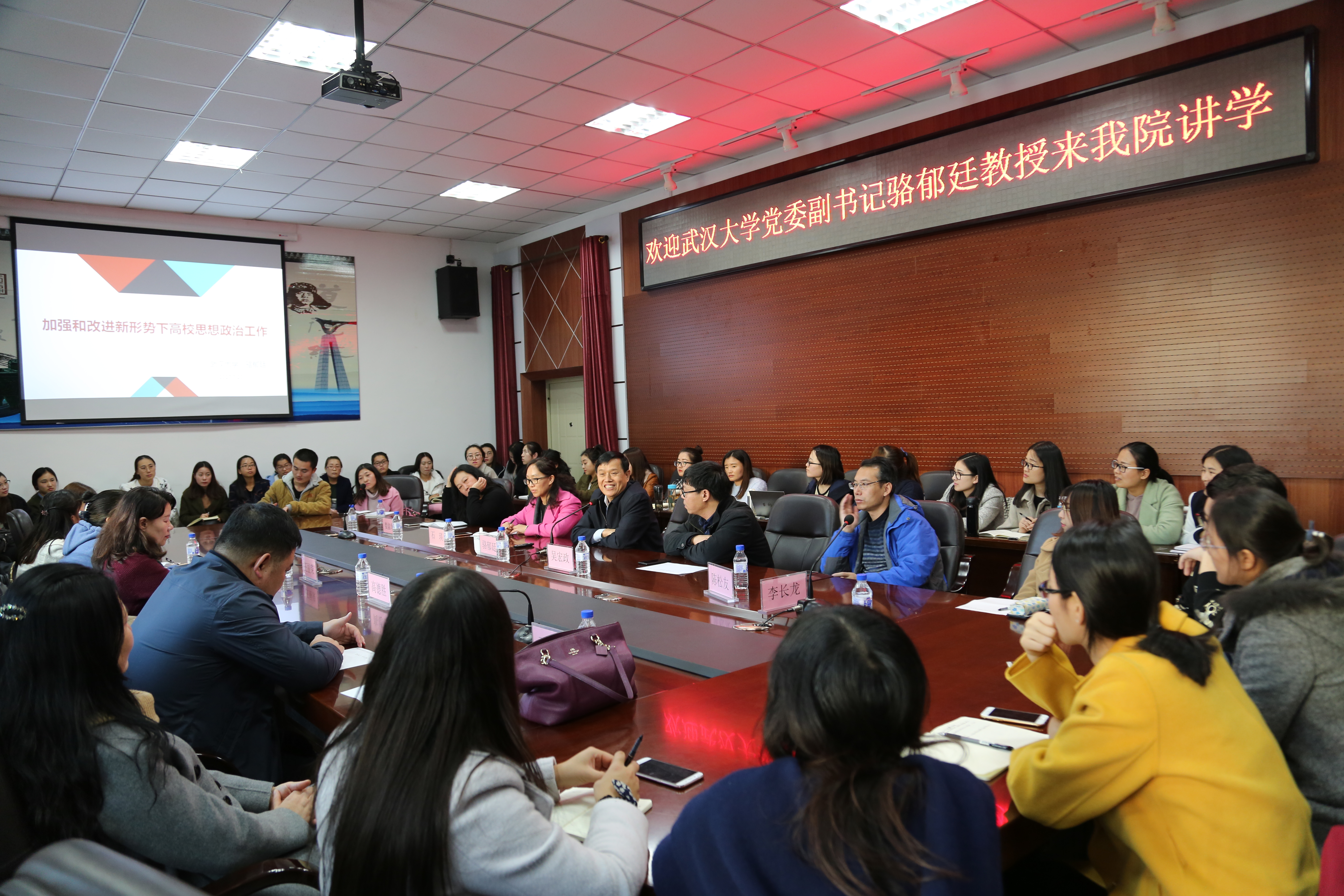 2017年10月23日,在学习十九大精神之际,应博彩平台 、博彩平台 中国特色社会主义理论体系研究中心、中国道路与中国化马克思主义协同创新中心的邀请,国务院学科评议组成员、中央马克思主义理论建设工程首席专家、武汉大学原党委副书记骆郁廷教授来博彩平台 学术报告厅做了一场题目为“全国高校思想政治工作会议精神”的学术报告。博彩平台 陈松友、石瑛、姜鑫、娄淑华、王淑荣、王丽荣、陈延秋、汪晓红、李泓祎...